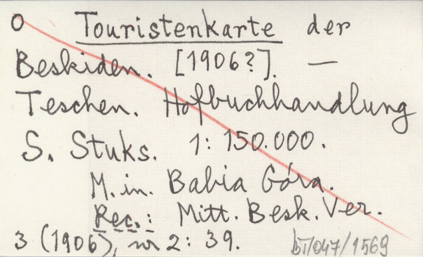 Hofbuchhandlung S. Stuks (Teschen) , 1: 150.000. M.in. Babia Góra. REC: Mitteilungen des Beskiden-Vereines 3 (1906), nr 2: 39.