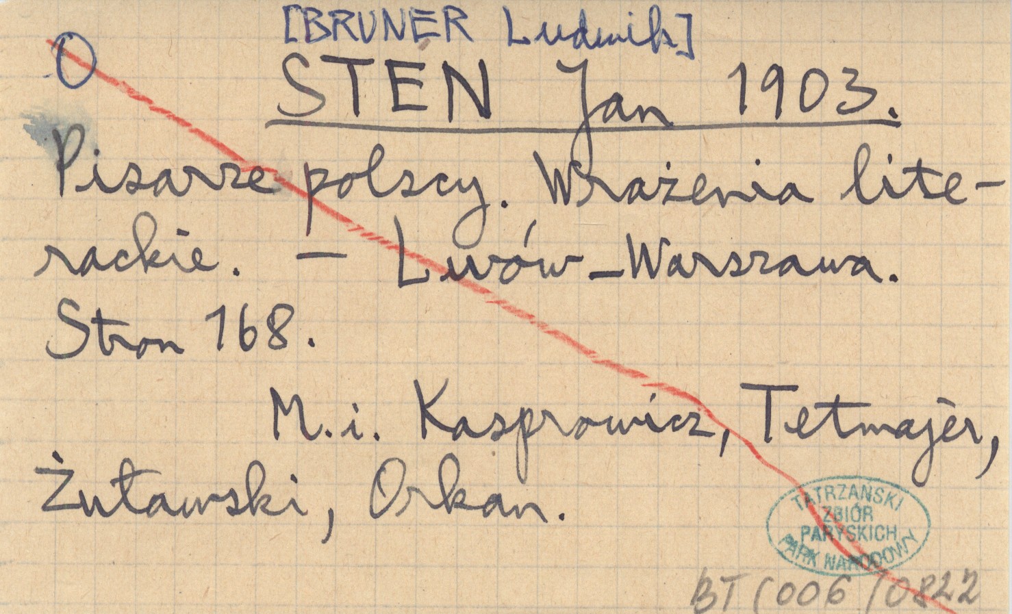 STEN Jan [BRUNER Ludwik] 1903 Pisarze polscy. Wrażenia literackie.