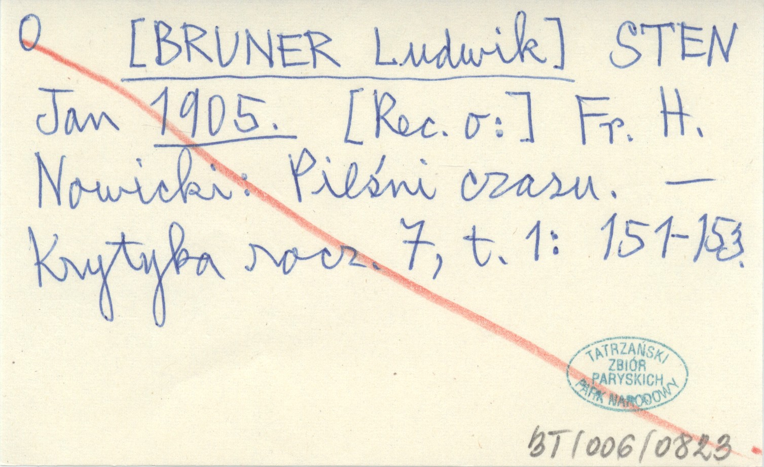 STEN Jan [BRUNER Ludwik] 1905 [Rec. o:] Fr. H. Nowicki: Pieśni czasu.