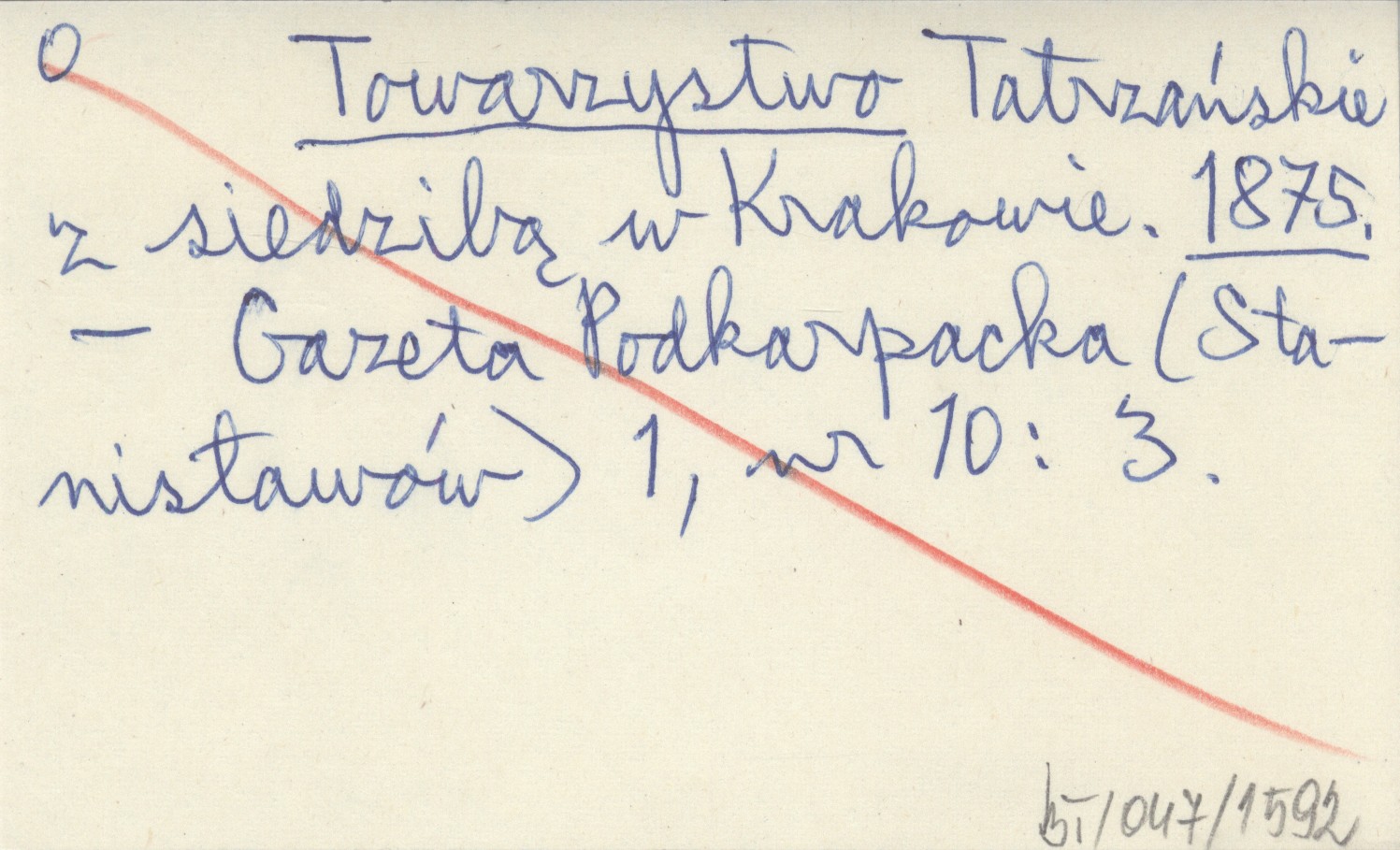 Towarzystwo Tatrzańskie z siedzibą w Krakowie. 1875