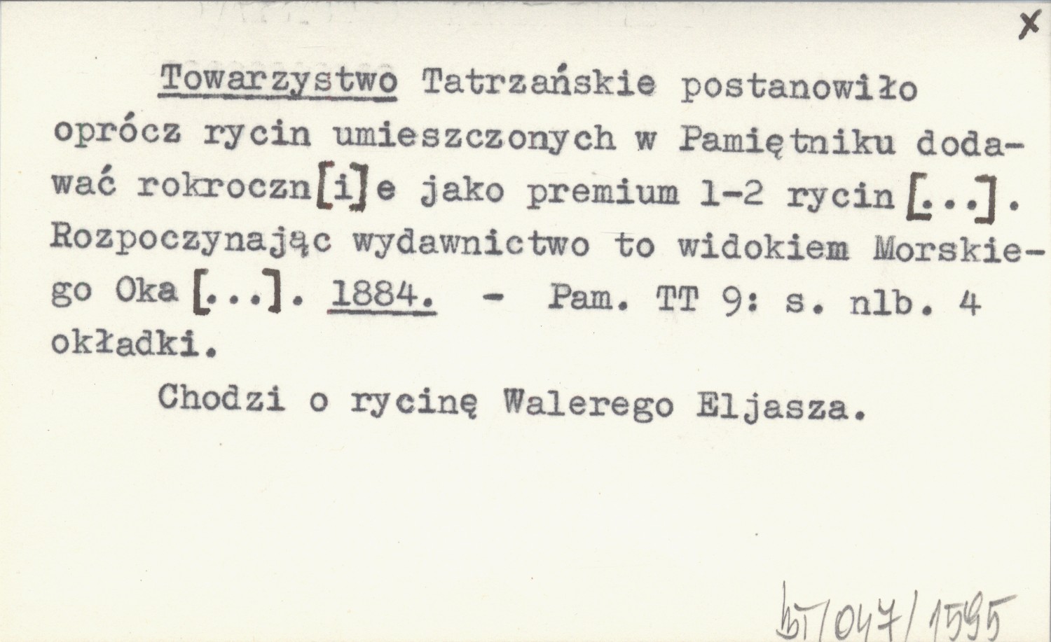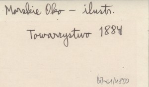 Towarzystwo Tatrzańskie postanowiło oprócz rycin umieszczonych w Pamiętniku dodawać rokroczn[i]e jako premium 1-2 rycin [...]. Rozpoczynając wydawnictwo to widokiem Morskiego Oka [...]. 1884
