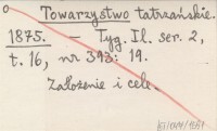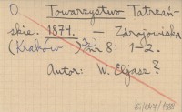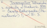 Towarzystwo Tatrzańskie z siedzibą w Krakowie. 1875