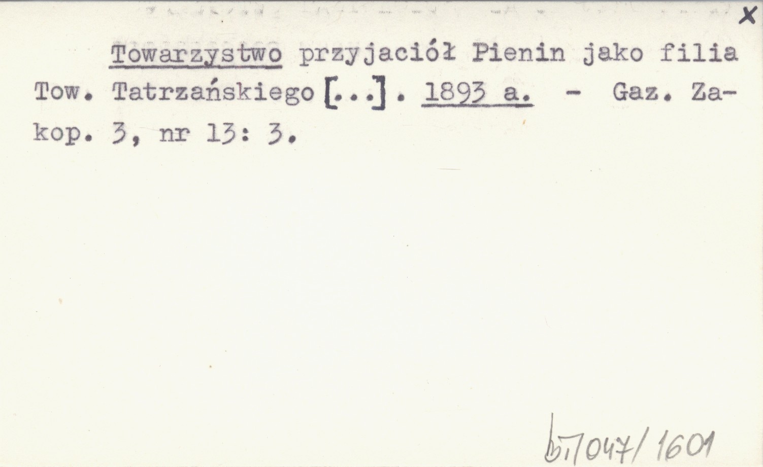 Towarzystwo przyjaciół Pienin jako filia Tow. Tatrzańskiego [...]. 1893 a