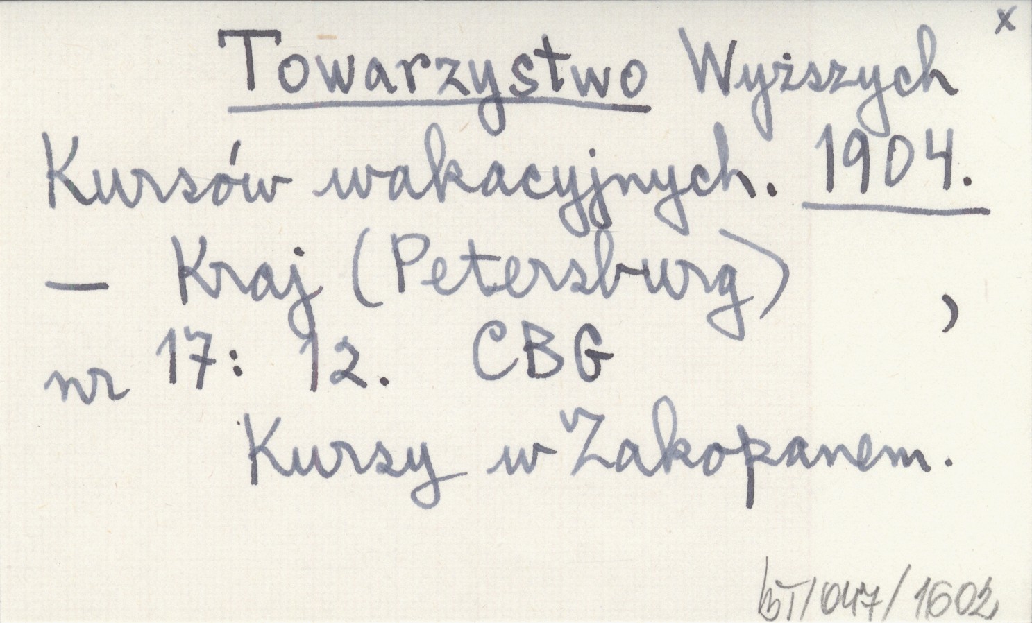 Wyższych Kursów wakacyjnych.