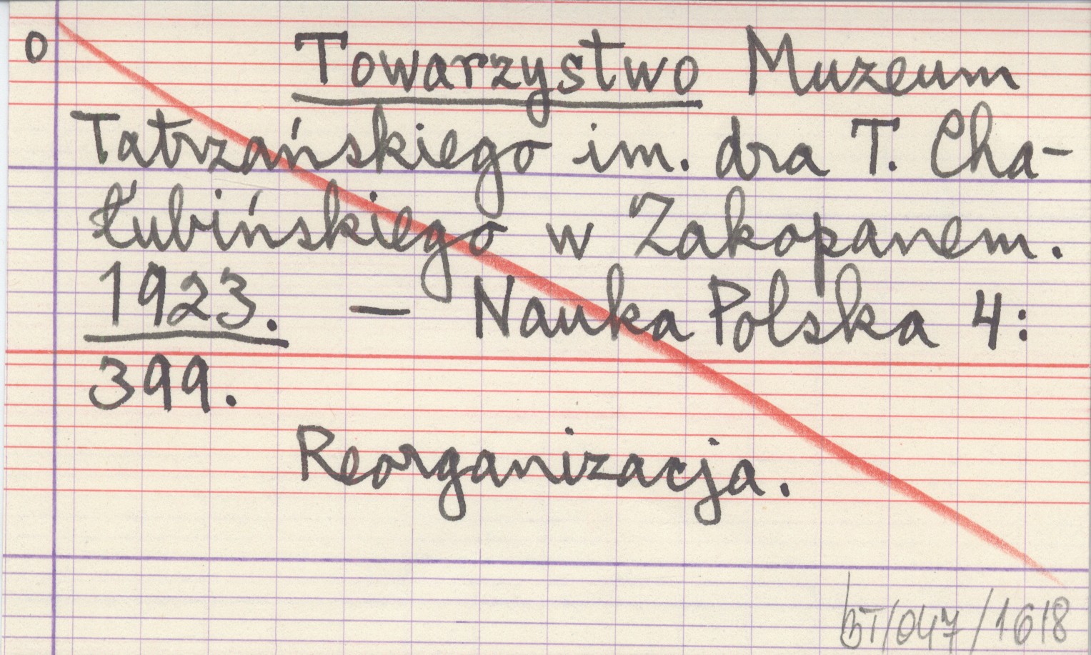 Towarzystwo Muzeum Tatrzańskiego im. dra T. Chałubińskiego w Zakopanem. 1923