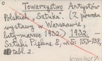 Towarzystwo Artystów Polskich "Sztuka". (Z powodu wystawy w Warszawie, luty-marzec 1932). 1932