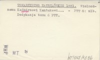 TOWARZYSTWO TATRZAŃSKIE 1881 Wielmożnemu Kaźmirzowi Kantakowi...