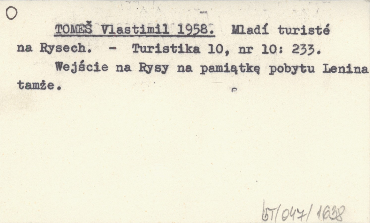 Turistika, 10, nr 10: 233. Wejście na Rysy na pamiątkę pobytu Lenina tamże.