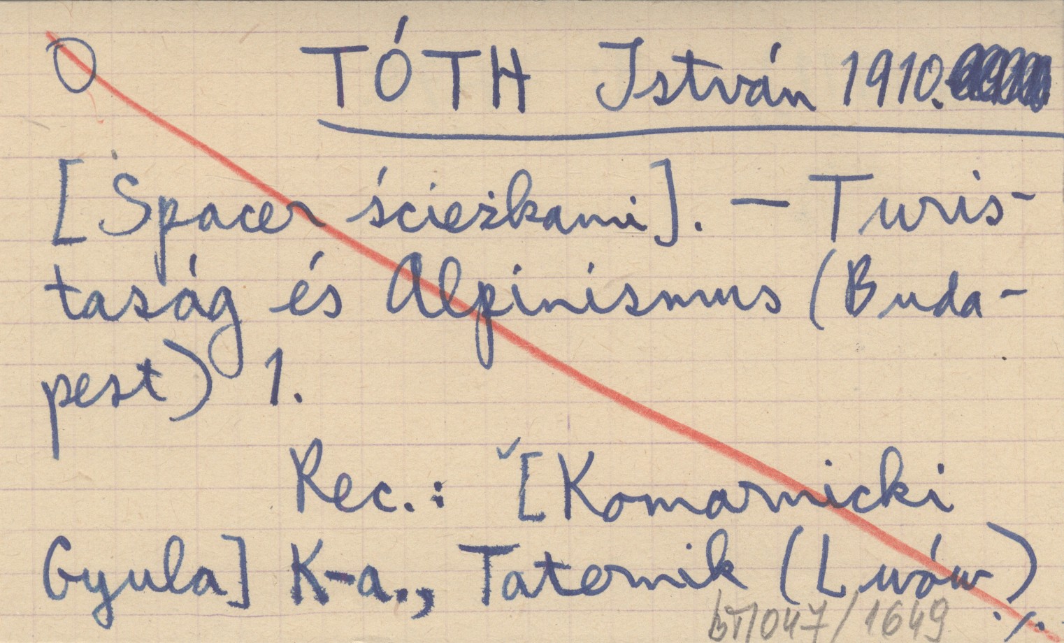 Turistaság és Alpinizmus (Budapest) , 1. REC: [KOMARNICKI Gyula] K-a., Taternik (Lwów) 5 (1911), nr 4: 74-75.