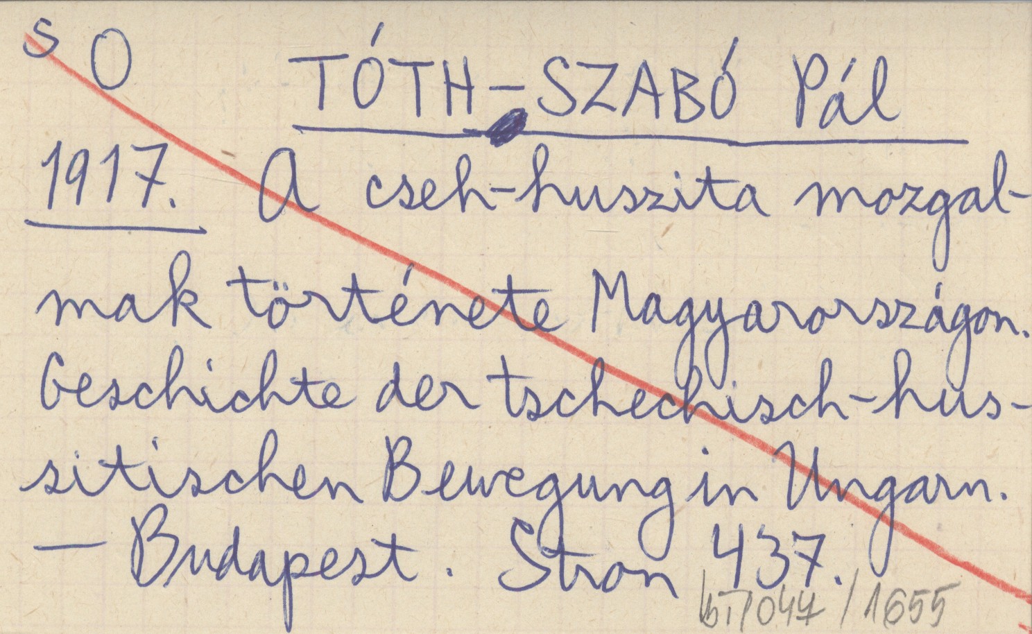 TÓTH-SZABÓ Pál 1917 A cseh-huszita mazgalmak története Magyarországon. Geschichte der tschechisch-hussitischen Bewegung in Ungarn.