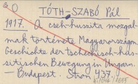 TÓTH-SZABÓ Pál 1917 A cseh-huszita mazgalmak története Magyarországon. Geschichte der tschechisch-hussitischen Bewegung in Ungarn.
