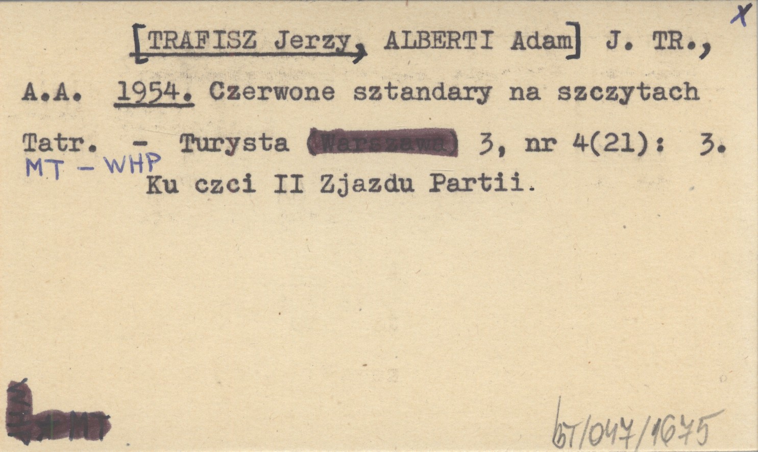 J. TR. [TRAFISZ Jerzy] [ALBERTI, Adam]. ; 1954 Czerwone sztandary na szczytach Tatr.