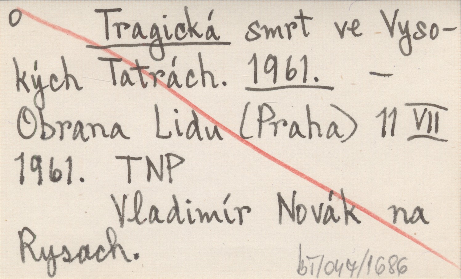 Obrana Lidu (Praha) , 11 VII 1961. Vladimír Novák na Rysach.