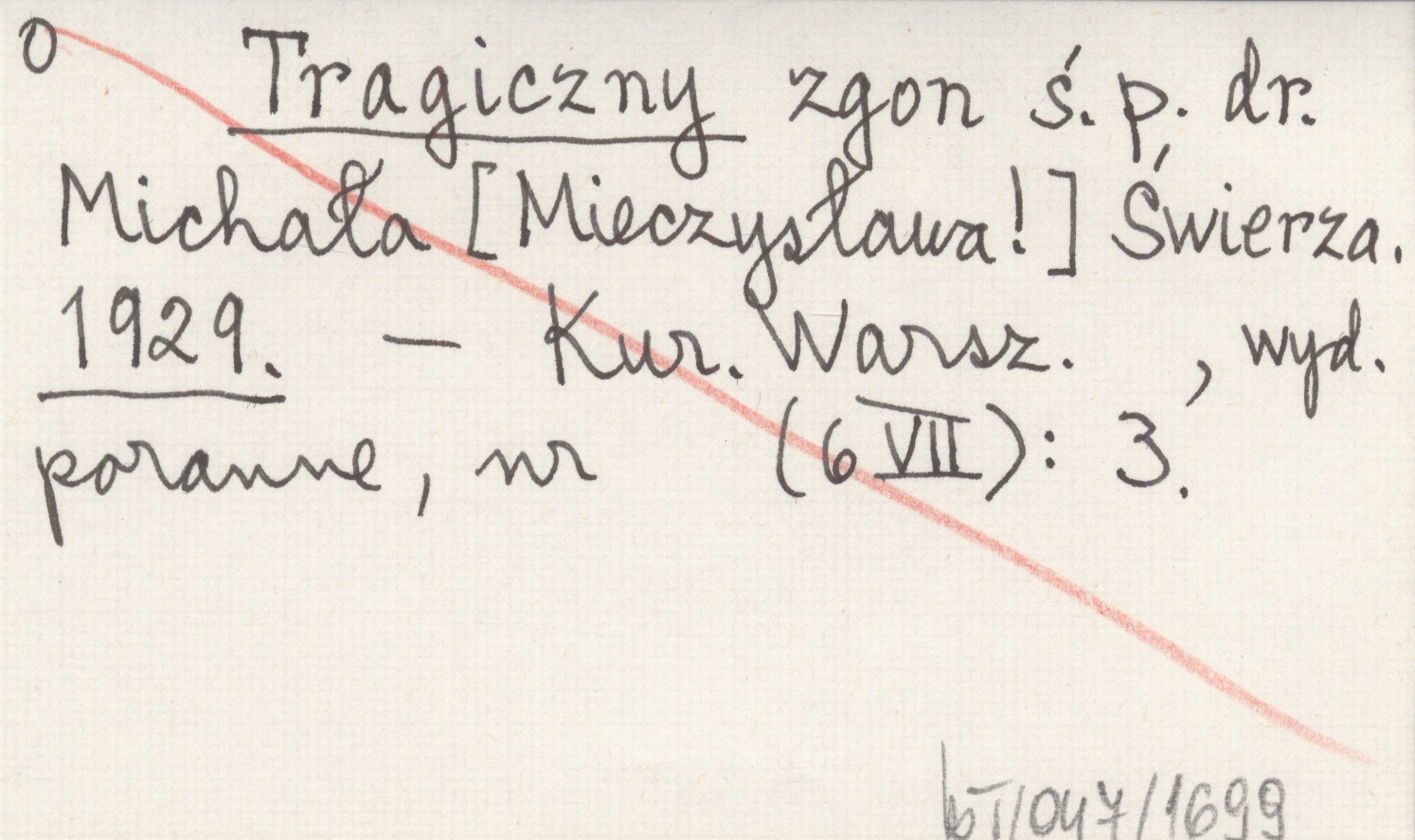 Tragiczny zgon ś. p. dr. Michała [Mieczysława!] Świerza. 1929