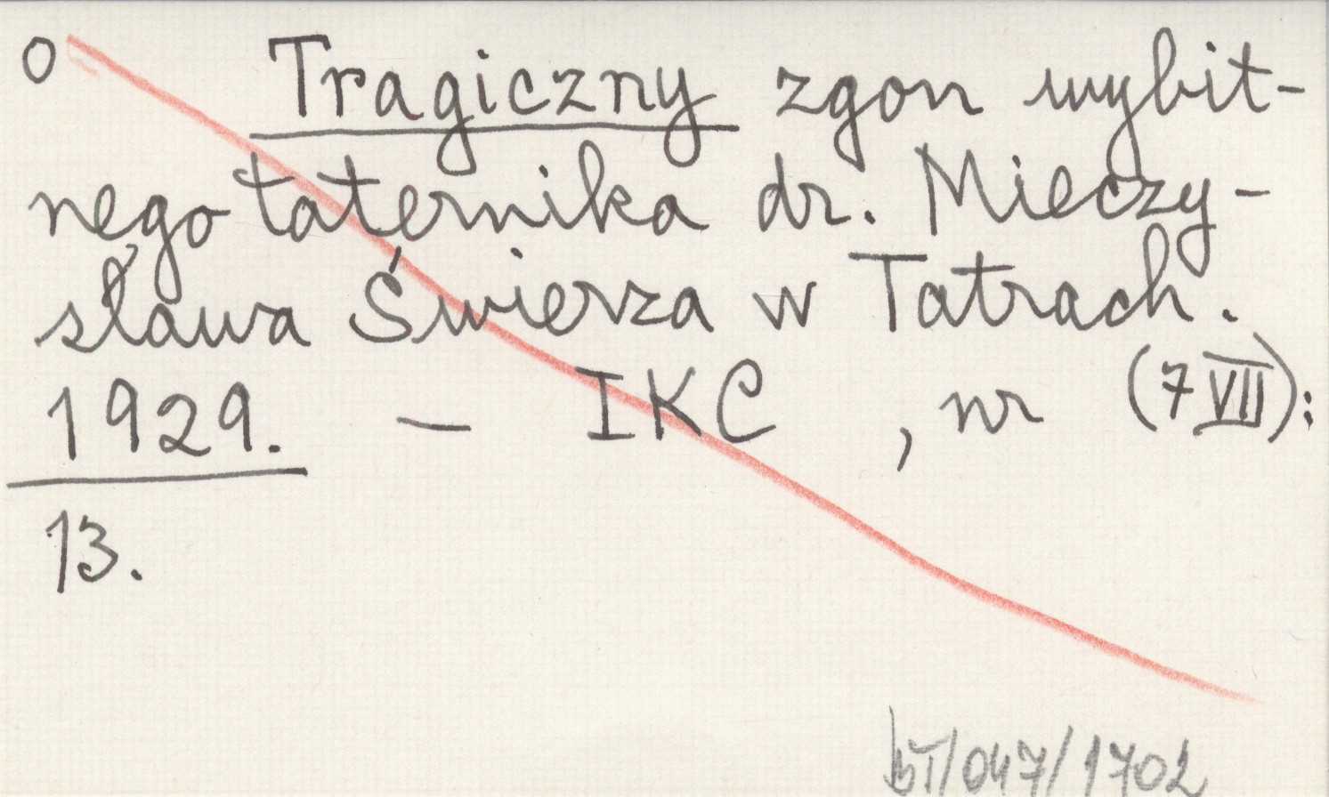 Tragiczny zgon wybitnego taternika dr. Mieczysława Świerza w Tatrach. 1929