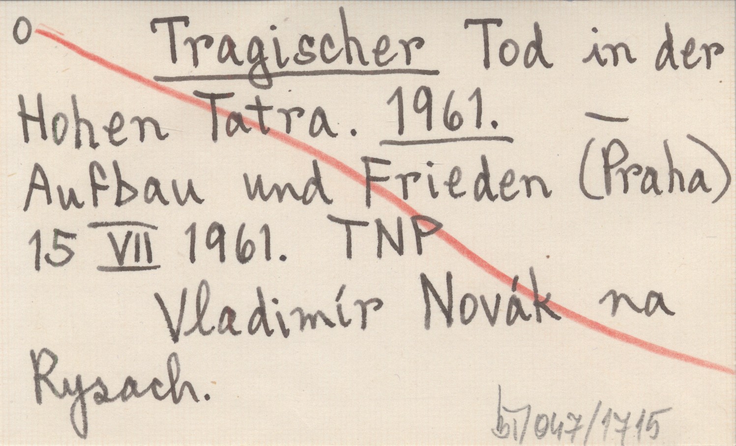 Aufbau und Frieden (Praha) , 15 VII 1961. Vladimír Novák na Rysach.