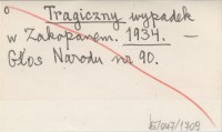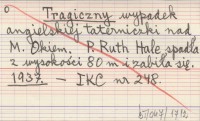 Tragiczny wypadek angielskiej taterniczki nad M. Okiem. P. Ruth Hale spadła z wysokości 80 m zabiła się. 1937
