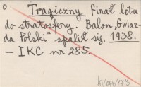 Tragiczny finał lotu do stratosfery. Balon "Gwiazda Polski" spalił się. 1938