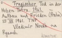 Tragischer Tod in der Hohen Tatra. 1961