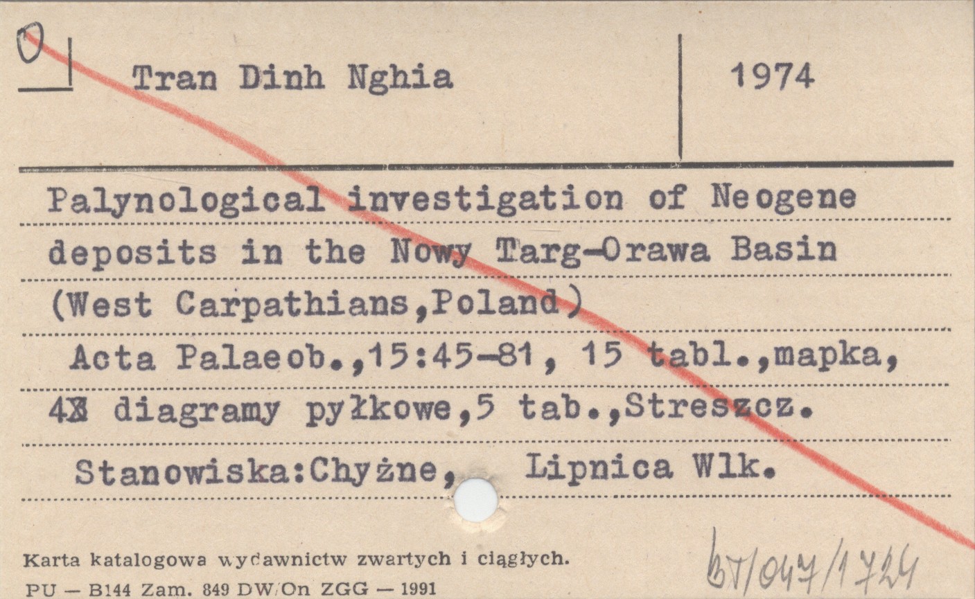 Tran Dinh Nghia 1974 Palynological investigation of Neogene deposits in the Nowy Targ-Orawa Basin (West Carpathians, Poland).