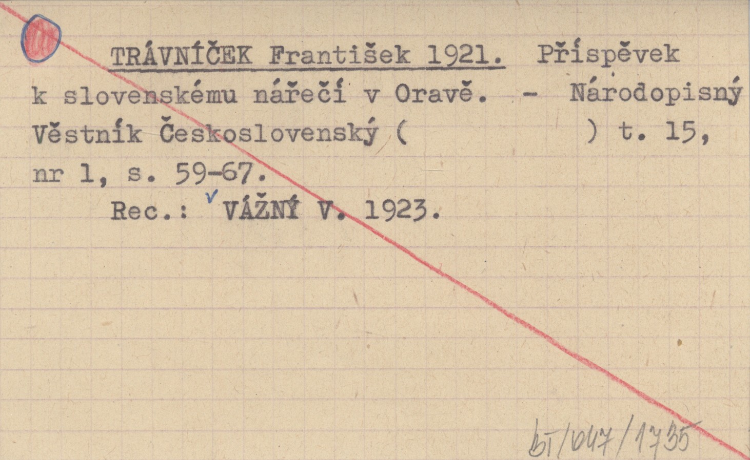 TRÁVNÍČEK Frantiąek 1921 Příspěvek k slovenskému nářečí v Oravě.