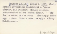 AMBROS P. [TRAUSYL Ambroży] 1875 Némely ritkább növényfajok álláshelyei a "magas Tátrán". Die Standorte einiger seltenen Pflanzenarten in der "hohen Tátra".