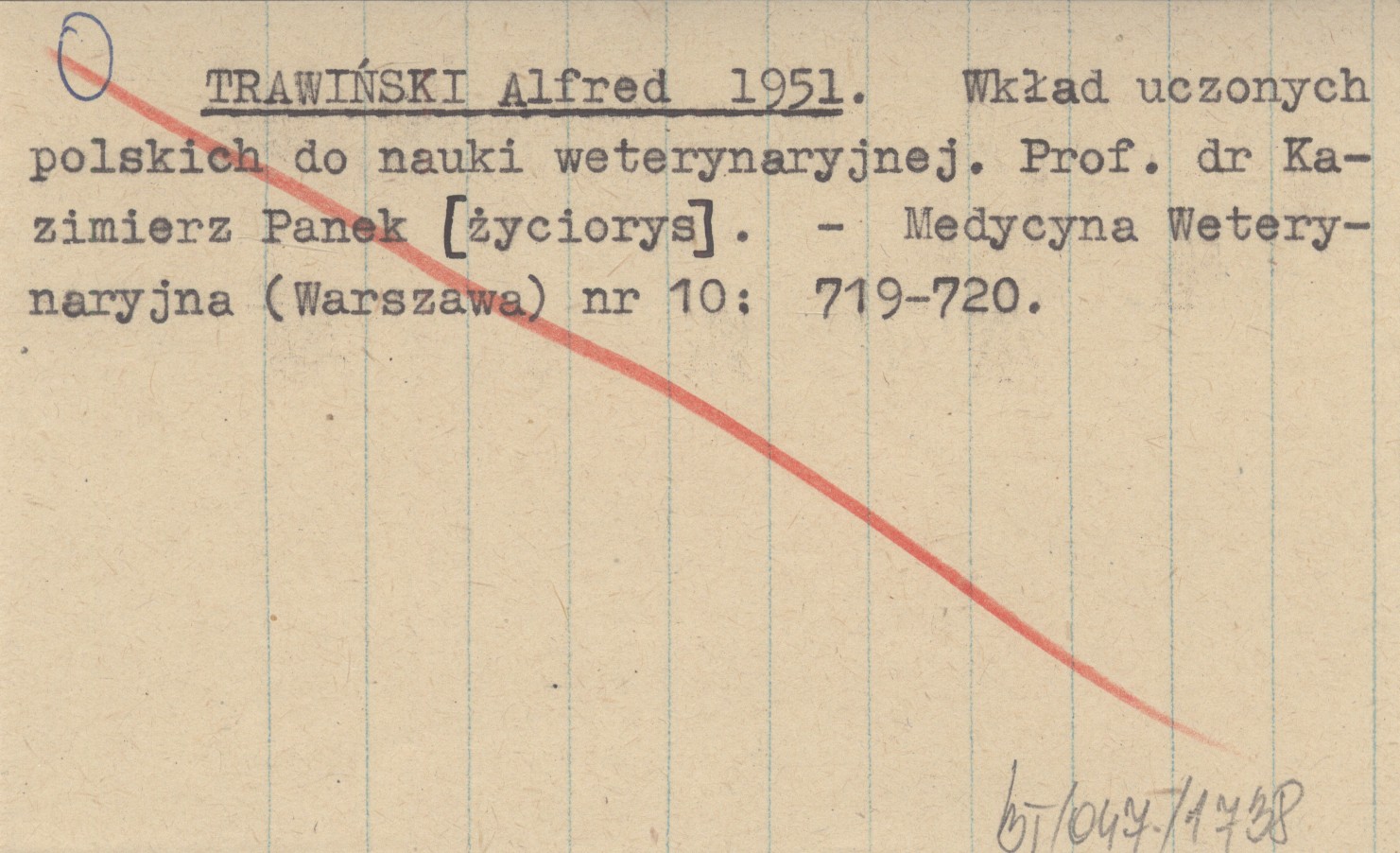 TRAWIŃSKI Alfred 1951 Wkład uczonych polskich do nauki weterynaryjnej. Prof. dr Kazimierz Panek [życiorys].
