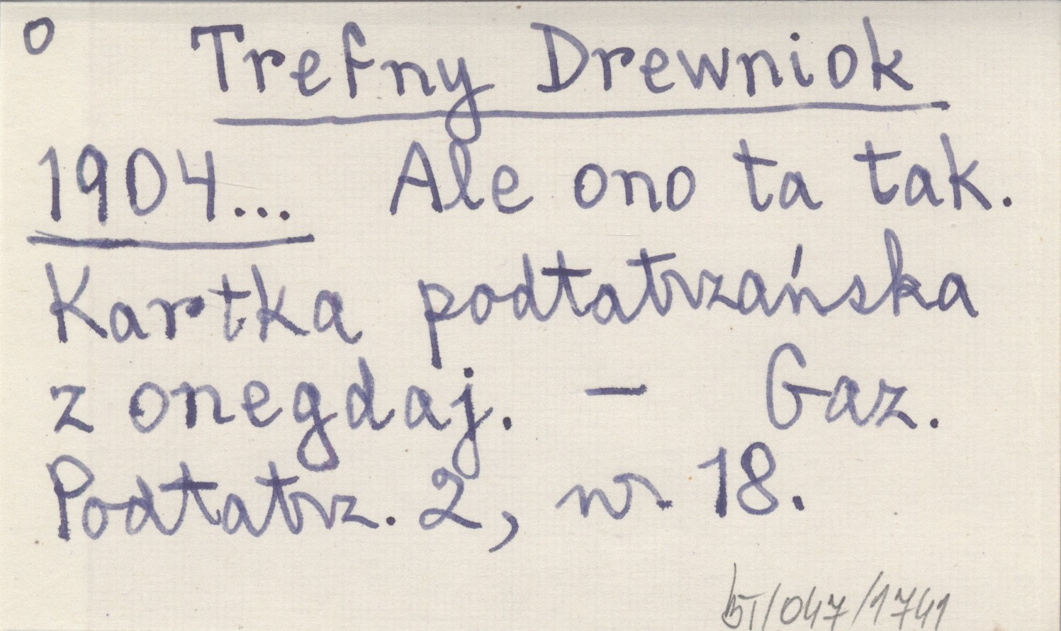 Trefny Drewniok 1904... Ale ono ta tak. Kartka podtatrzańska z onegdaj.