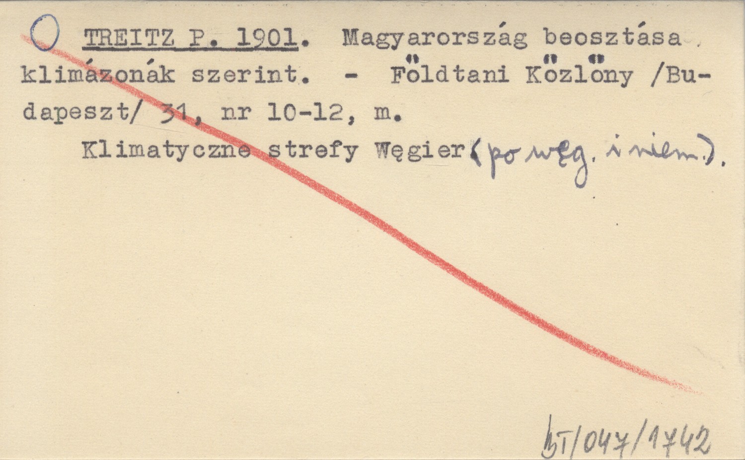 TREITZ P. 1901 Magyarország beosztása klimázonák szerint.