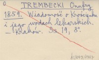 TREJDOSIEWICZ Jan 1876 Prace geologiczne Stanisława Staszica znajdujące się w bibliotece uniwersytetu warszawskiego.