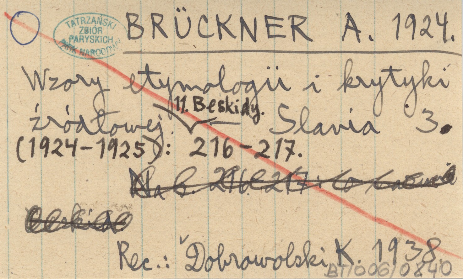 BRÜCKNER A. 1924 Wzory etymologii i krytyki źródłowej. 11. Beskidy.