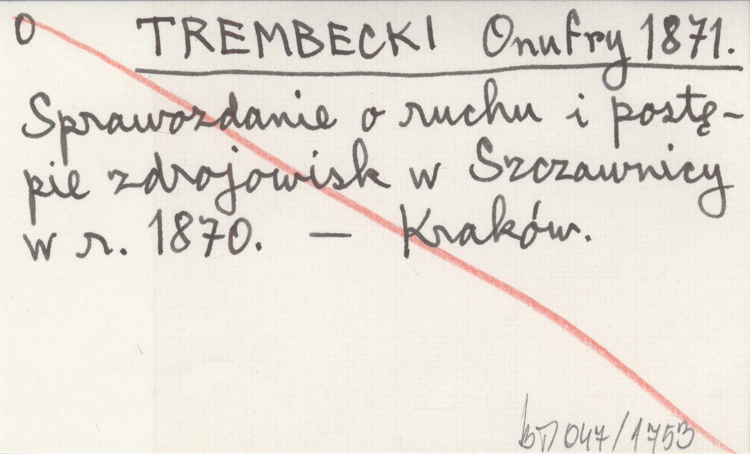 TREMBECKI Onufry 1871 Sprawozdanie o ruchu i postępie zdrojowisk w Szczawnicy w r. 1870.