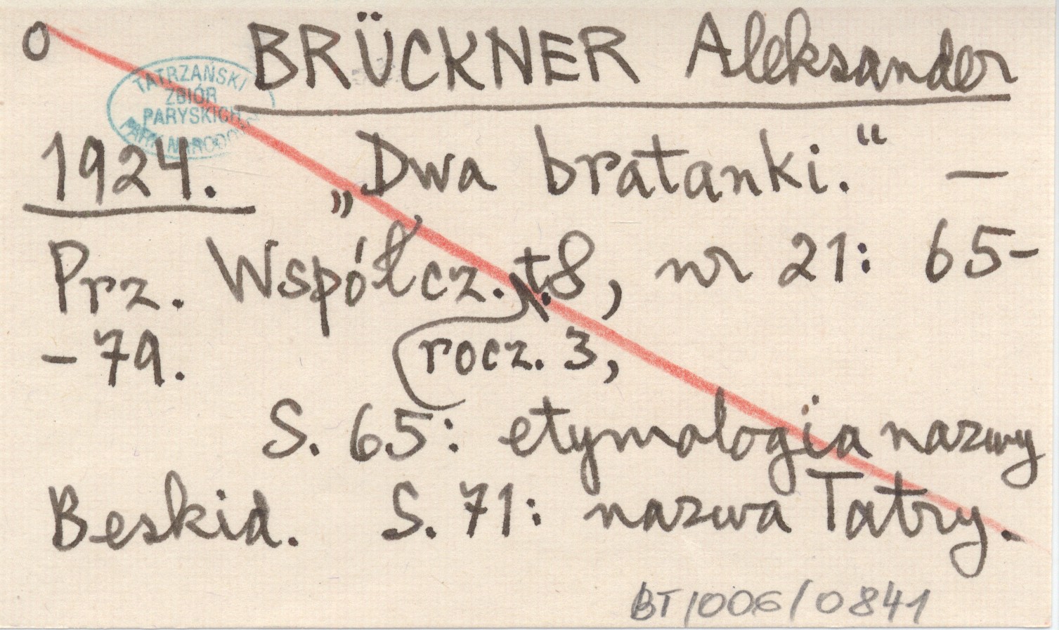 Prz. Współcz., R. 3, t. 8, nr 21: 65-79. S. 65: etymologia nazwy Beskid. S. 71: nazwa Tatry.