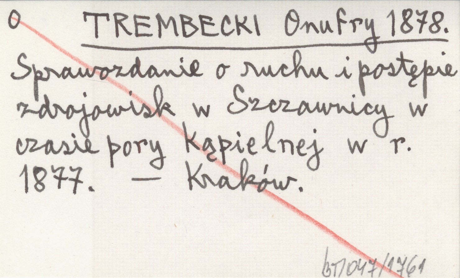TREMBECKI Onufry 1878 Sprawozdanie o ruchu i postępie zdrojowisk w Szczawnicy w czasie pory kąpielnej w r. 1877.