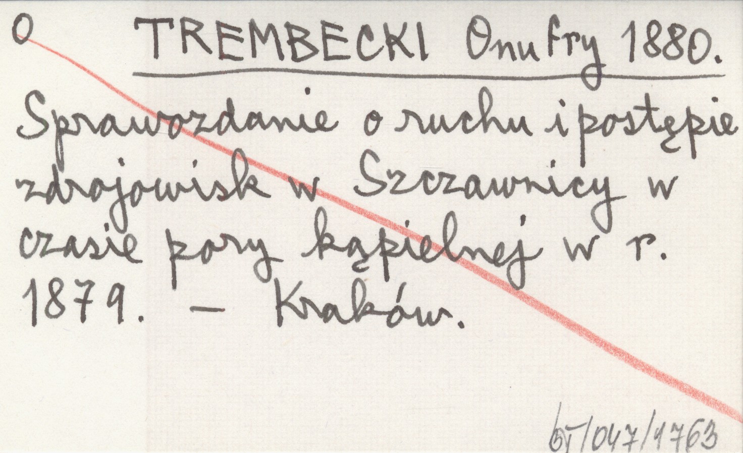TREMBECKI Onufry 1880 Sprawozdanie o ruchu i postępie zdrojowisk w Szczawnicy w czasie pory kąpielnej w r. 1879.