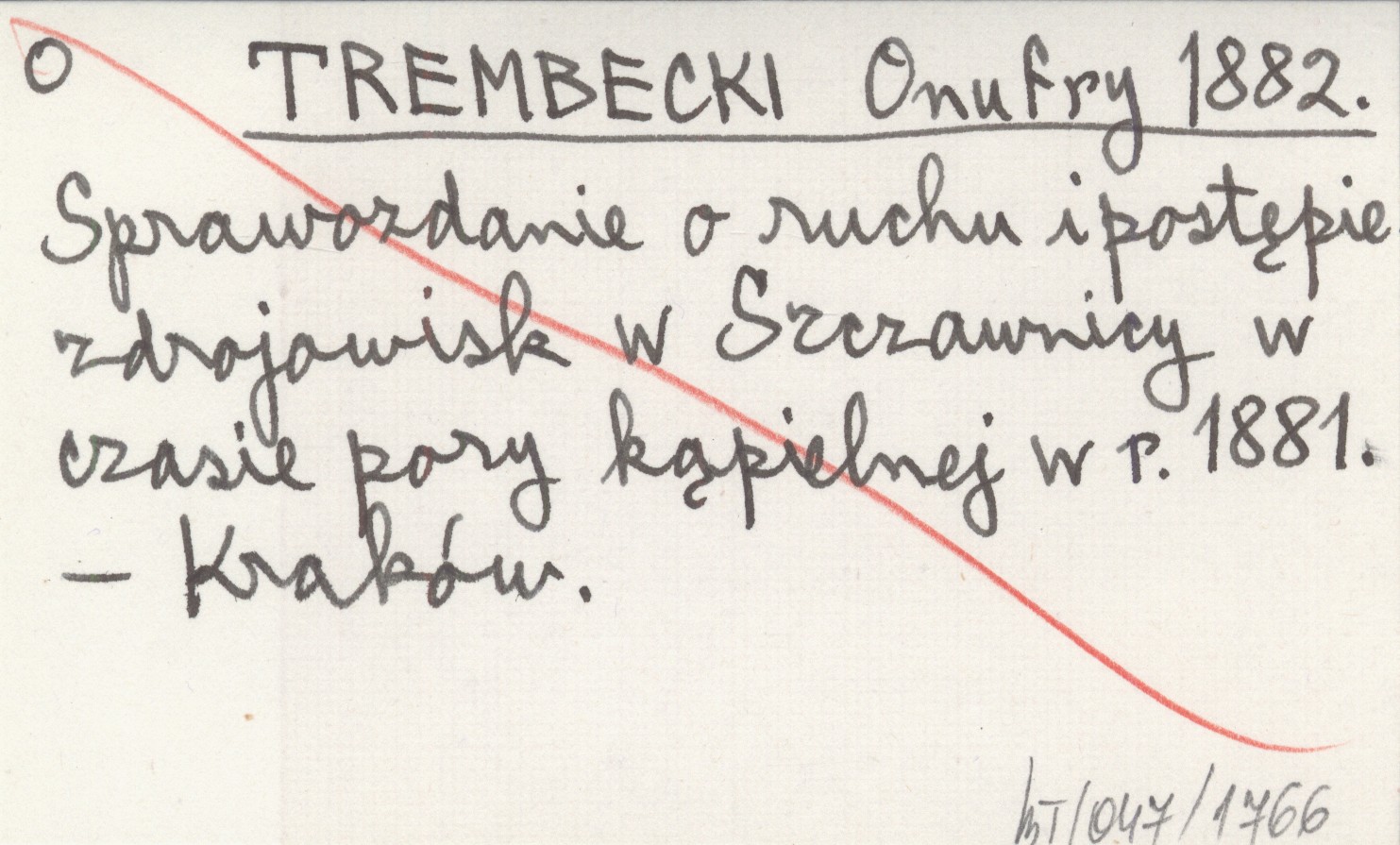 TREMBECKI Onufry 1882 Sprawozdanie o ruchu i postępie zdrojowisk w Szczawnicy w czasie pory kąpielnej w r. 1881.