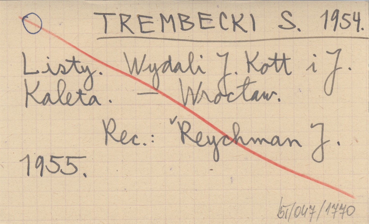 TREMBECKI S. 1954 Listy. Wydali J. Kott i J. Kaleta.