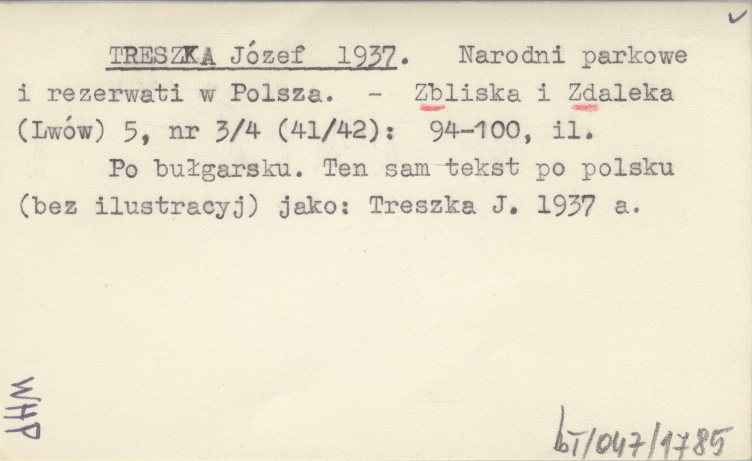 TRESZKA Józef 1937 Narodni parkowe i rezerwati w Polsza.