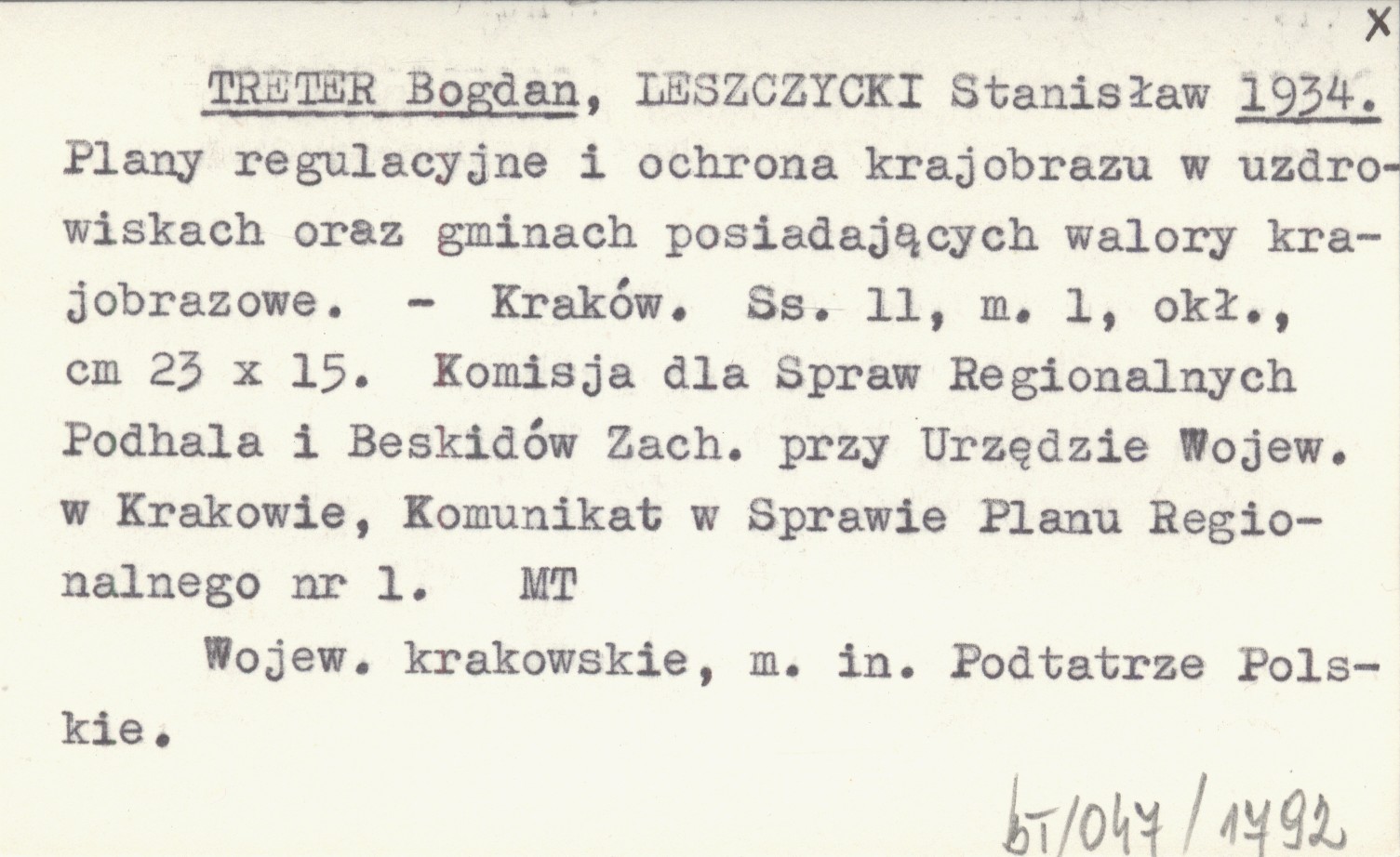 TRETER Bogdan LESZCZYCKI, Stanisław. ; 1934 Plany regulacyjne i ochrona krajobrazu w uzdrowiskach oraz gminach posiadających walory krajobrazowe.