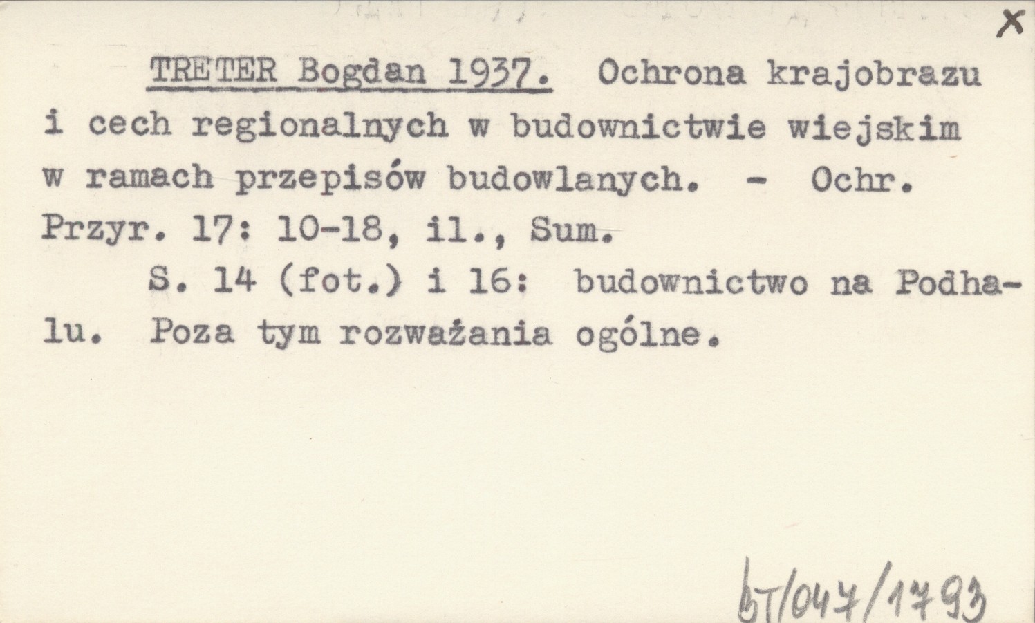 TRETER Bogdan 1937 Ochrona krajobrazu i cech regionalnych w budownictwie wiejskim w ramach przepisów budowlanych.