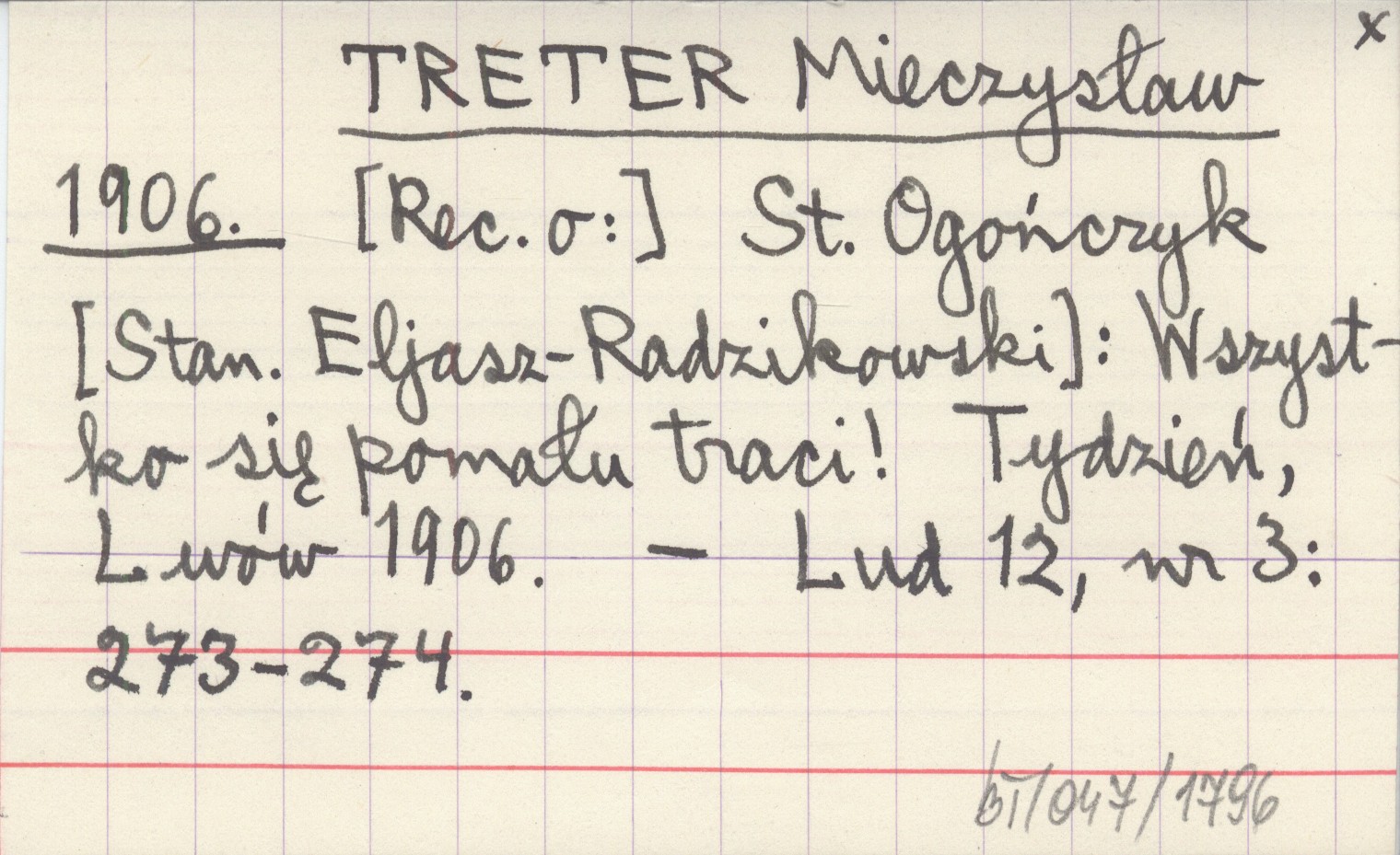 TRETER Mieczysław 1906 St. Ogończyk [Stan. Eljasz-Radzikowski]: Wszystko się pomału traci! Tydzień, Lwów 1906.