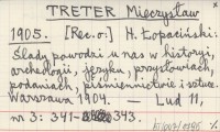 TRETER Mieczysław 1905 H. Łopaciński: Ślady powodzi u nas w historyi, archeologii, języku, przysłowiach, podaniach, piśmiennictwie i sztuce. Warszawa 1904.