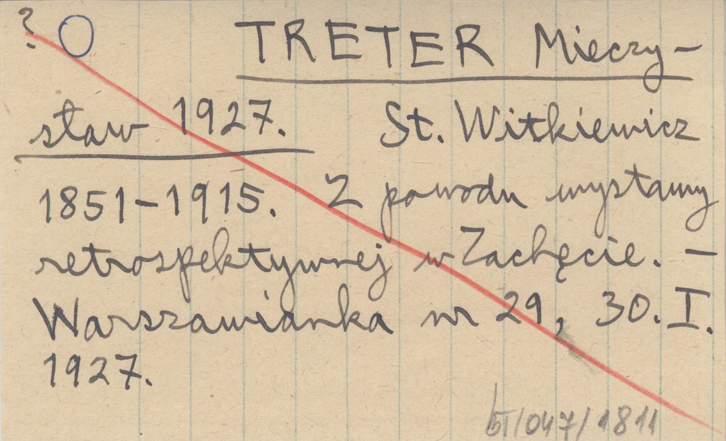 TRETER Mieczysław 1927 St. Witkiewicz 1851-1915. Z powodu wystawy retrospektywnej w Zachęcie.