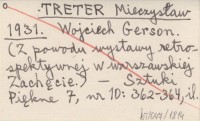 TRETER Mieczysław 1931 Wojciech Gerson. (Z powodu wystawy retrospektywnej w warszawskiej Zachęcie).