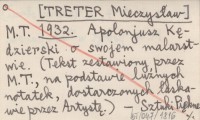 M. T. [TRETER Mieczysław] 1932 Apolonjusz Kędzierski o swojem malarstwie. (Tekst zestawiony przez M. T., na podstawie luźnych notatek, dostarczonych łaskawie przez Artystę).