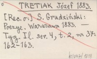 TRETIAK Józef 1883 S. Grudziński: Poezye. Warszawa 1883.