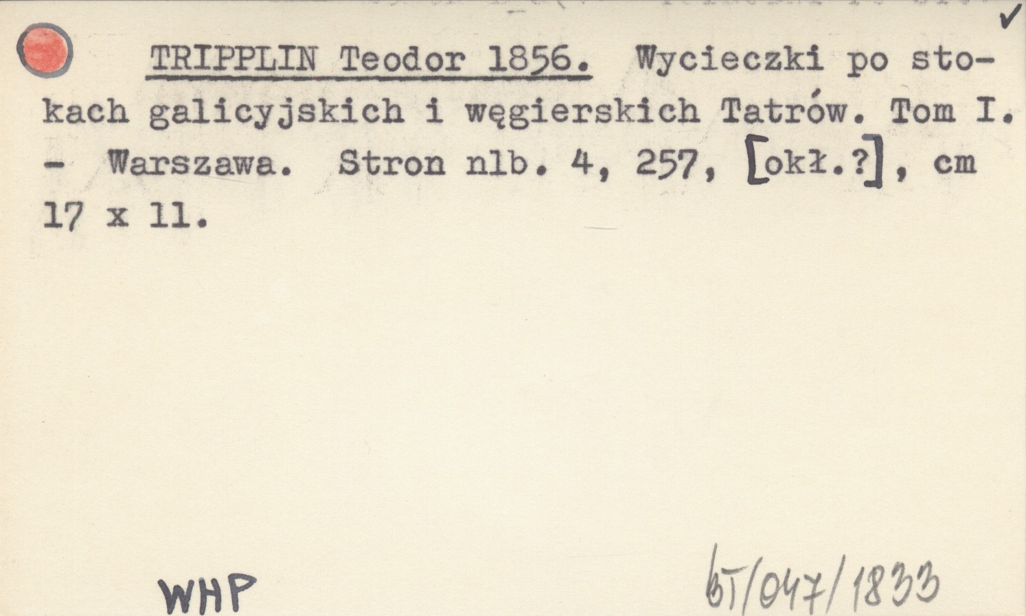 TRIPPLIN Teodor 1856 Wycieczki po stokach galicyjskich i węgierskich Tatrów. Tom I.
