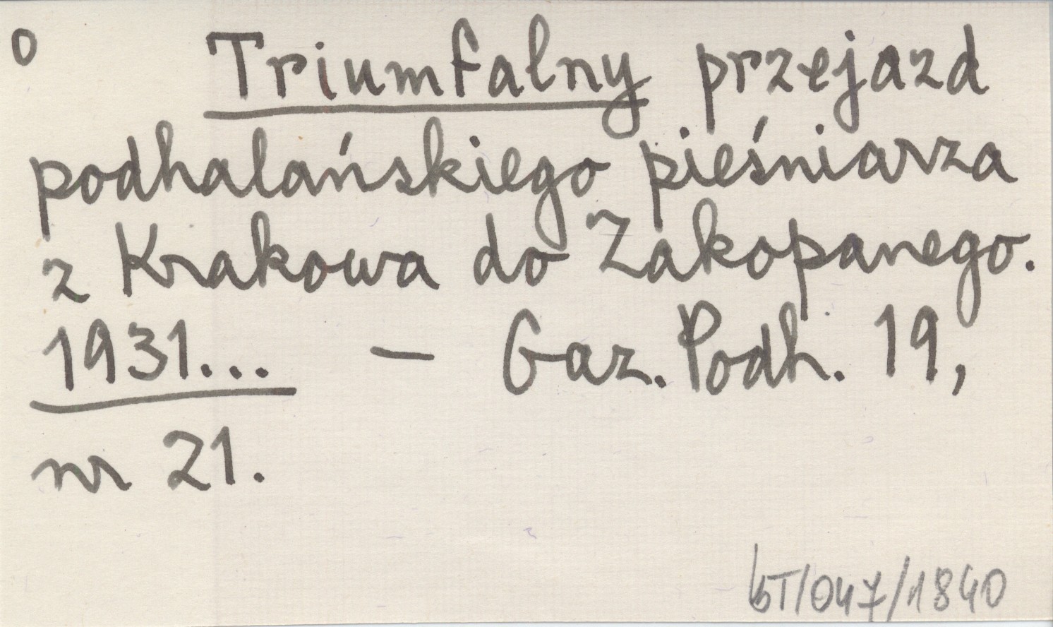 Triumfalny przejazd podhalańskiego pieśniarza z Krakowa do Zakopanego. 1931...