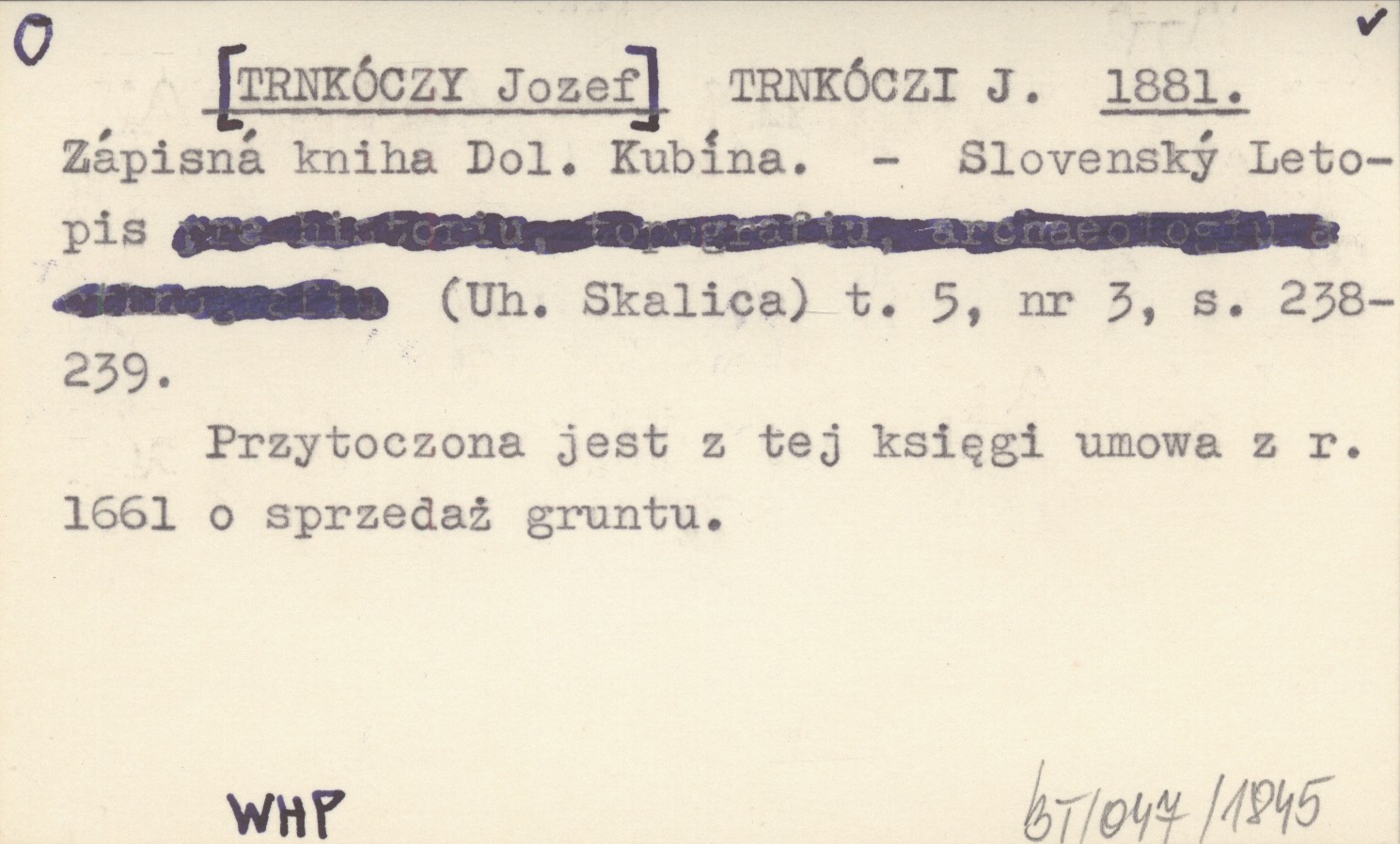 Slovenský Letopis (Uh. Skalica) , T. 5, nr 3: 238-239. Przytoczona jest z tej księgi umowa z r. 1661 o sprzedaż gruntu.