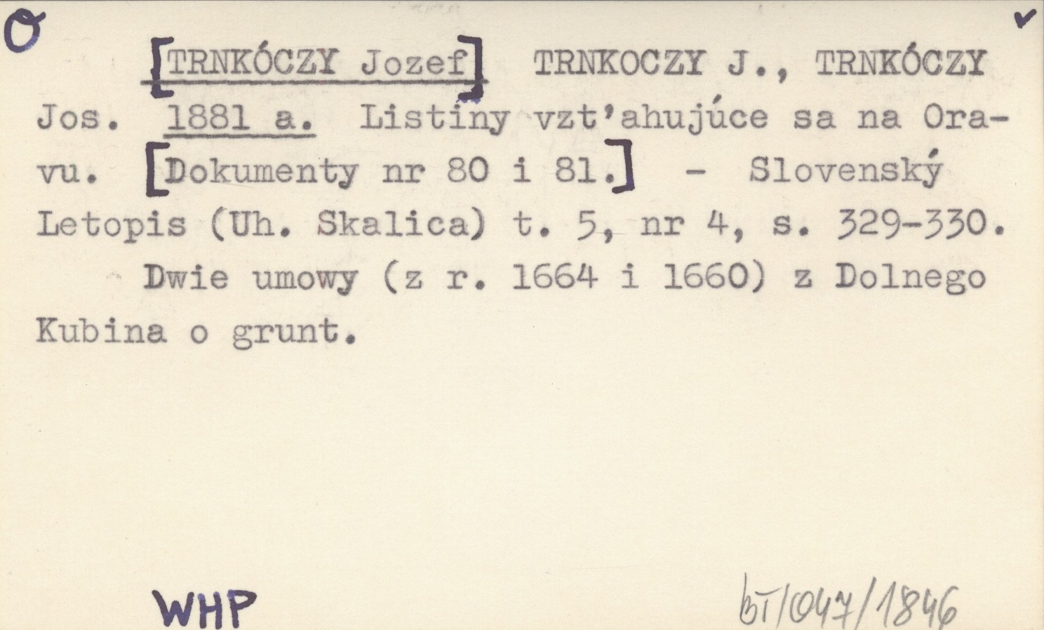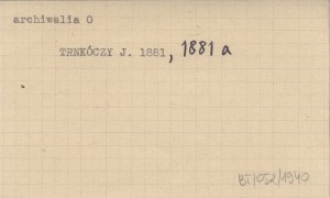 TRNKOCZY J. ; TRNKÓCZY Jos. ; [TRNKÓCZY Jozef] 1881 a Listiny vzťahujúce sa na Oravu. [Dokumenty nr 80 i 81].